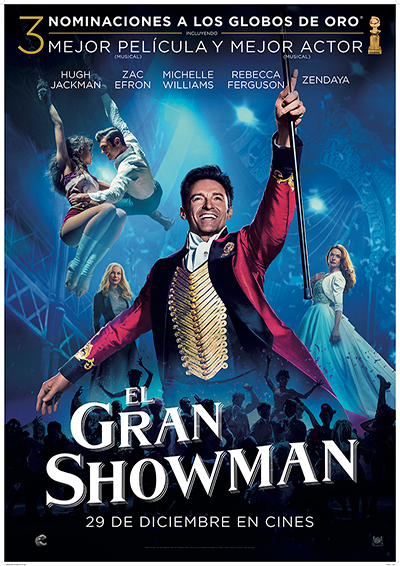El Gran Showman es un audaz y original musical que celebra el nacimiento de la industria del espectáculo y la sensación de asombro que nos domina cuando los sueños se hacen realidad. Inspirado en la ambición y la imaginación de P.T. Barnum, “El Gran Showman” narra la historia de un visionario que surgió de la nada para crear un fascinante espectáculo que se convirtió en una sensación mundial. “El Gran Showman” está dirigida por el apasionado realizador novel, Michael Gracey, con canciones de los ganadores del Óscar Benj Pasek y Justin Paul (“La La Land”), e interpretado por el Nominado al Oscar Hugh Jackman. A Jackman le acompañan Zac Efron, Michelle Williams, también nominada al Oscar, Zendaya y Rebecca Ferguson. |